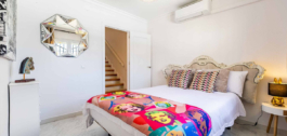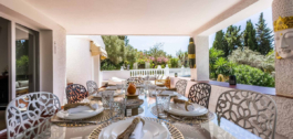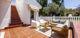 Džiaugiamės galėdami pristatyti šią nuostabią 4 miegamųjų 3,5 vonios kambario klasikinio Andalūzijos stiliaus atskirą vilą, pastatytą 1988 m. ir neseniai atnaujintą pagal aukščiausius standartus. Vila pasižymi brandžiais sodais su dengtomis ir atviromis poilsio ir valgomojo zonomis, taip pat specialia kepsninės zona, puikiai tinkančia mėgautis nuostabiu klimatu, jūros ir kalnų vaizdais. Puiki vieta, nes iki paplūdimių ir Benalmadenos miestelio – 5 minutės kelio automobiliu. Viloje yra automobilių stovėjimo aikštelė mažiausiai 4 automobiliams, didelis privatus baseinas, soliariumas su nuostabiais vaizdais ir 2 poilsio zonomis, baras, kepsninė, sandėliukai ir batutas. Viršutiniame lygyje per prieškambarį patenkame į erdvią svetainę su židiniu ir išėjimu į dengtą terasą, virtuvę, valgomąjį ir svečių tualetą. Apatiniame lygyje yra 4 dviviečiai miegamieji ir 3 vonios kambariai, iš kurių 2 yra su vonios kambariais ir 2 su išėjimu į baseiną ir sodus.