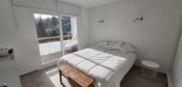 Pirmame aukšte yra trys miegamieji, vienas vonios kambarys, svečių tualetas ir skalbykla. Viršutiniame aukšte yra erdvi virtuvė, svetainė, du miegamieji ir tiesioginis išėjimas į lauko baseino zoną.