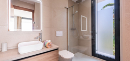 Namas suprojektuotas daugiausia dėmesio skiriant šviesai, erdvei ir komfortui, jame yra privatus baseinas ir terasa ant stogo su įspūdingais vaizdais. Įėjimo lygyje rasite atviro išplanavimo virtuvę ir valgomojo zoną, iš kurios atsiveria dideli langai ir fantastiška terasa, puikiai tinkanti poilsiui ar socialiniams susibūrimams. Vienu aukštu žemiau yra stilingas ir jaukus TV kambarys, o viršutiniame aukšte įrengti trys miegamieji su trimis vonios kambariais ir erdvus balkonas su stebuklingais vaizdais. Vilos stogo terasa dar labiau pakylėja įspūdžius ir suteikia dar įspūdingesnių vaizdų.
