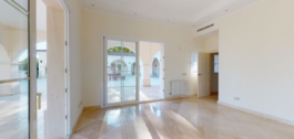 Geriausias parduodamas nekilnojamasis turtas Los Arqueros. Puikiai įrengta prabangi golfo vila, esanti Los Arqueros, su dideliu sklypu, iš kurio atsiveria puikus vaizdas į geriausią bendruomenės teritoriją, tiesiai į golfo aikštyną, didelį ežerą ir La Concha de Marbella kalną, taip pat į jūrą.