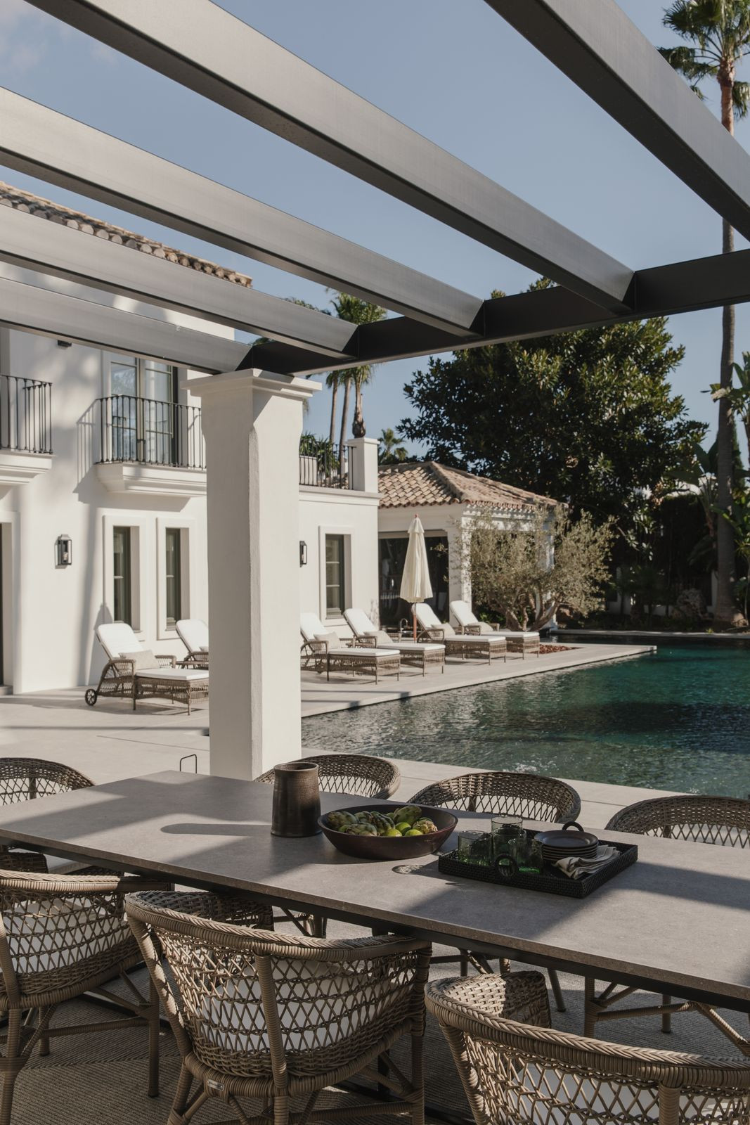Neseniai pastatyta vila pasižymi išskirtiniu meistriškumu ir puoselėja nesenstančią Prancūzijos provincijos estetiką bei elegantiškus architektūrinius elementus. Dengtos verandos suteikia pavėsį poilsio zonoms, puikiai tinkančioms atsipalaiduoti po Viduržemio jūros saule, o plačios terasos kviečia vakarieniauti lauke ir ramiai leisti laiką. Šalia privataus baseino įrengta poilsio zona su pagal užsakymą suprojektuotu baru sukuria puikią aplinką nepamirštamiems vasaros vakarams.