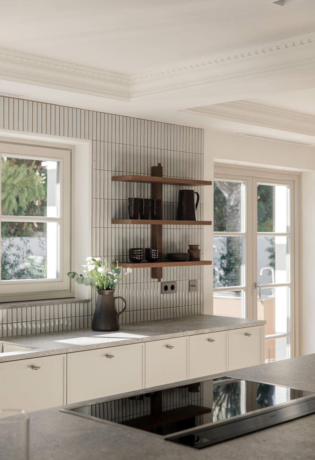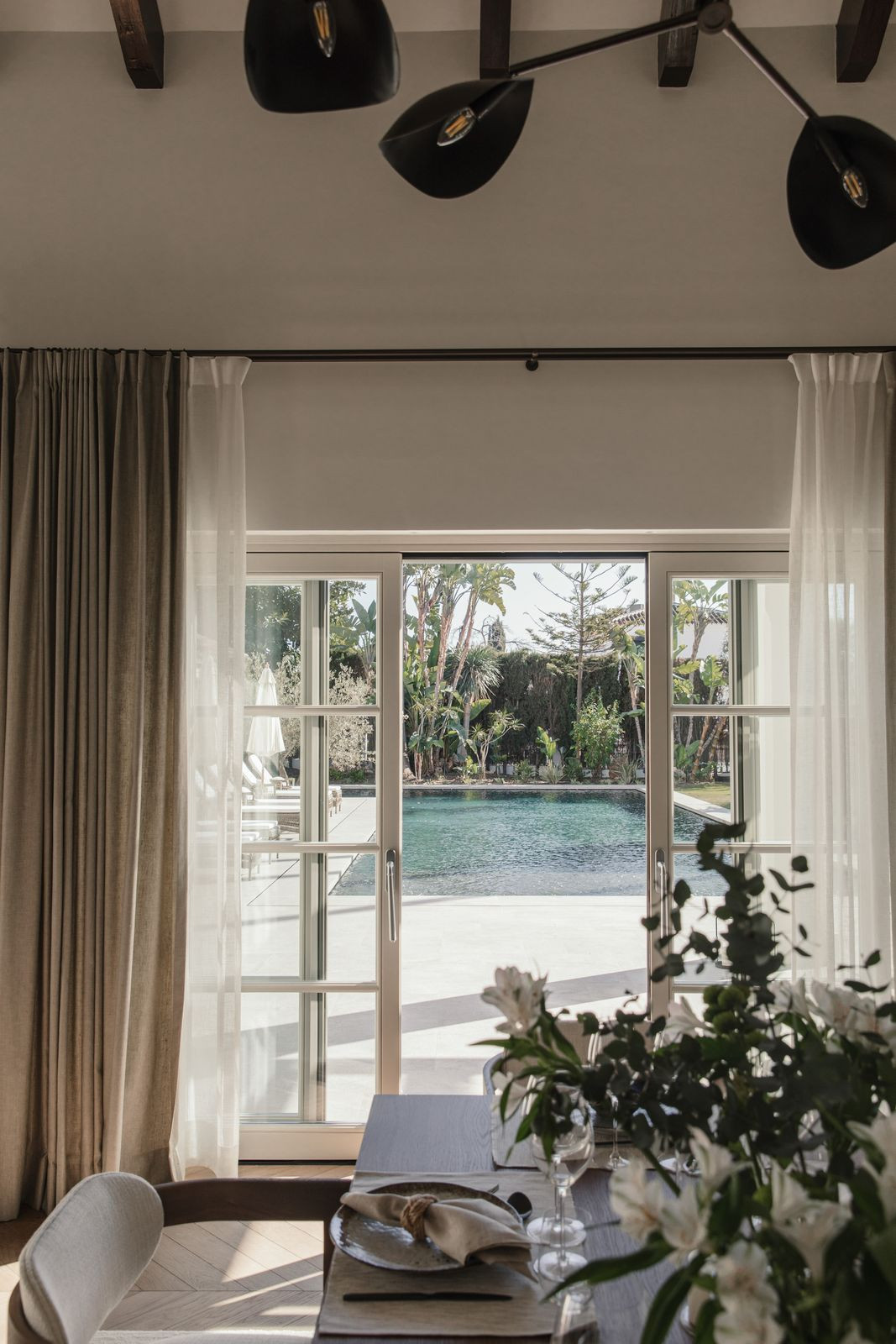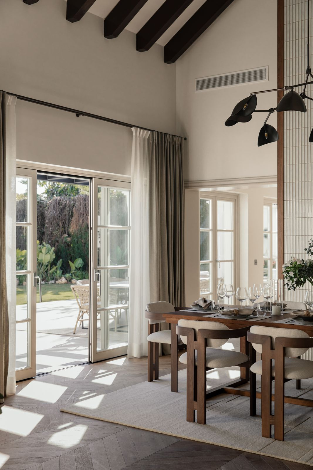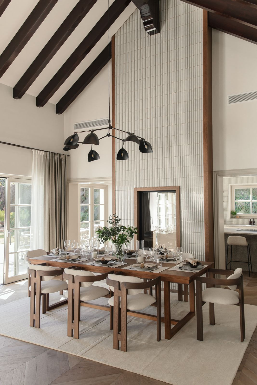 Namo širdis – nuostabiai pritaikyta virtuvė, kurioje funkcionalumas dera su aukščiausios klasės dizainu. Atviro plano svetainė ir valgomasis – tai šiuolaikinio interjero dizaino meistriškumo klasė, kurioje vyrauja rinktiniai baldai, raminanti neutrali paletė ir šiltos medinės detalės. Aukštos lubos ir tiesioginis išėjimas į terasą sustiprina patalpų ir lauko erdvę, pripildydamos ją natūralios šviesos ir oro.