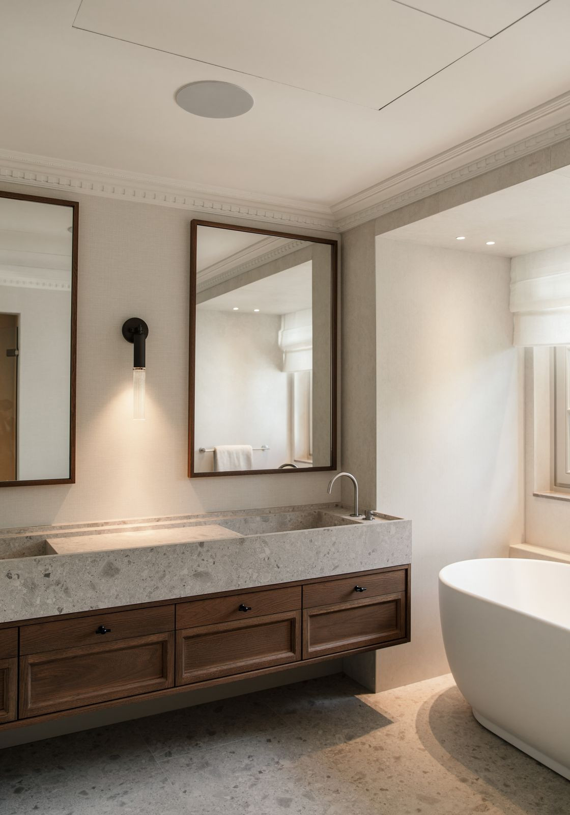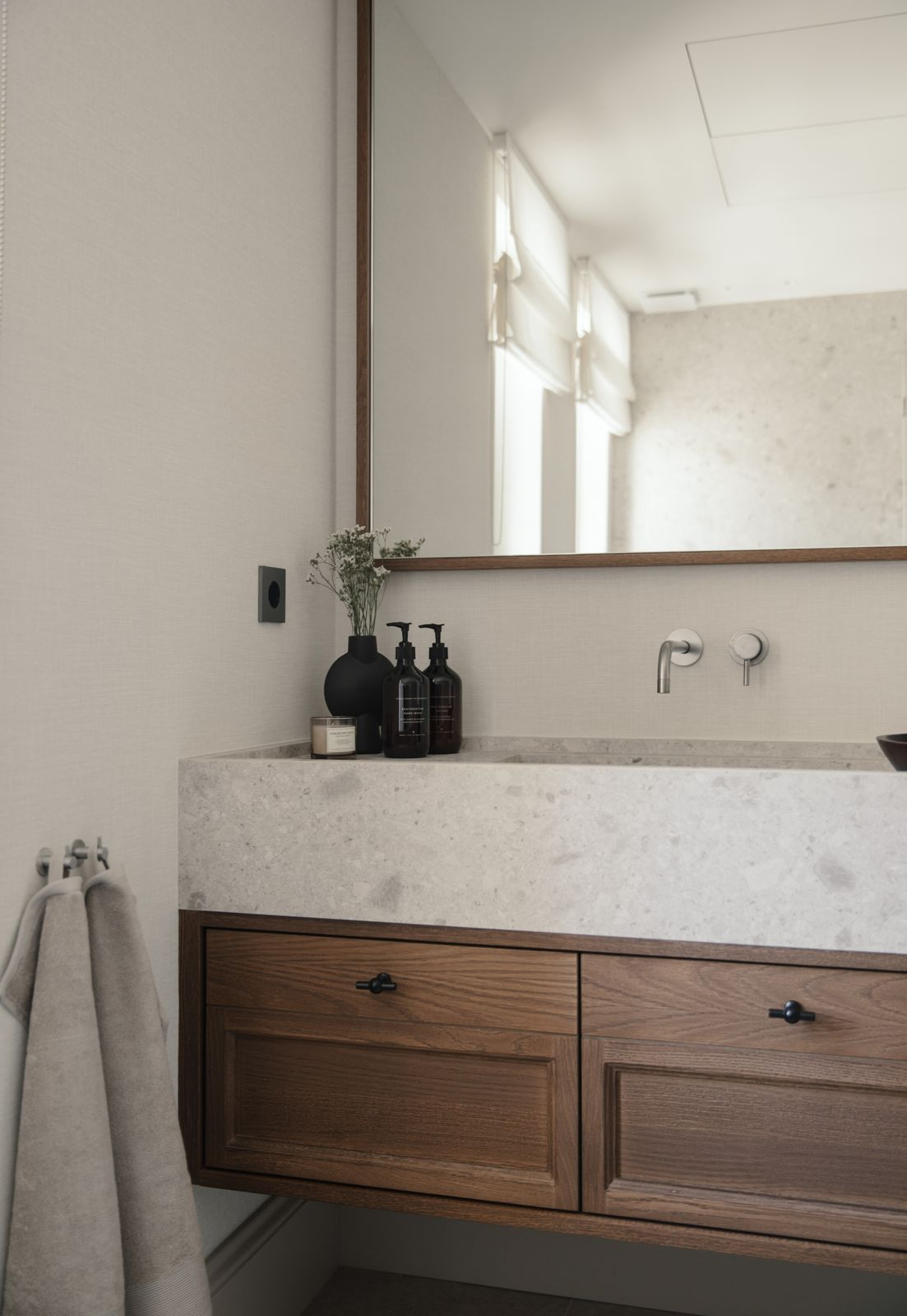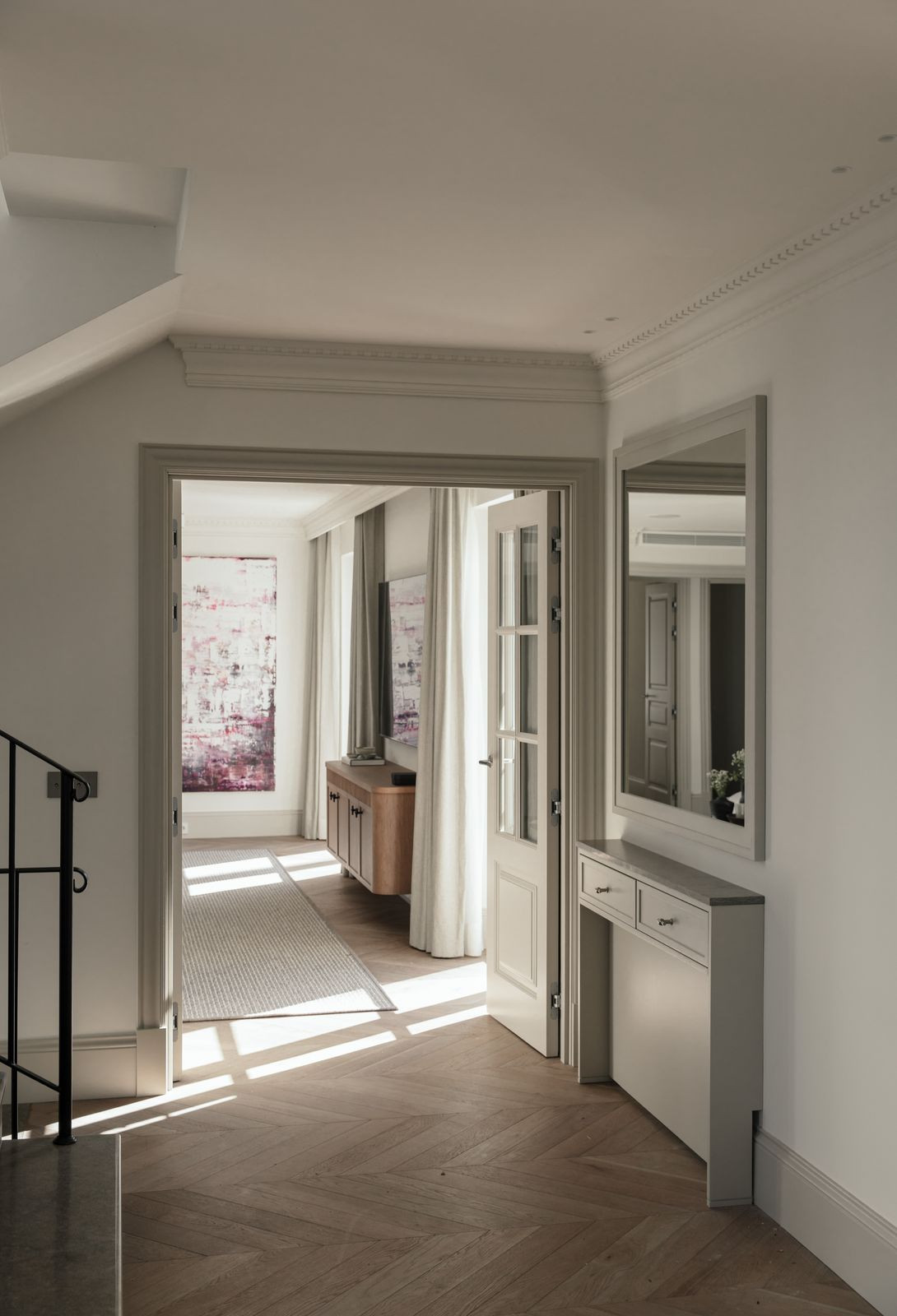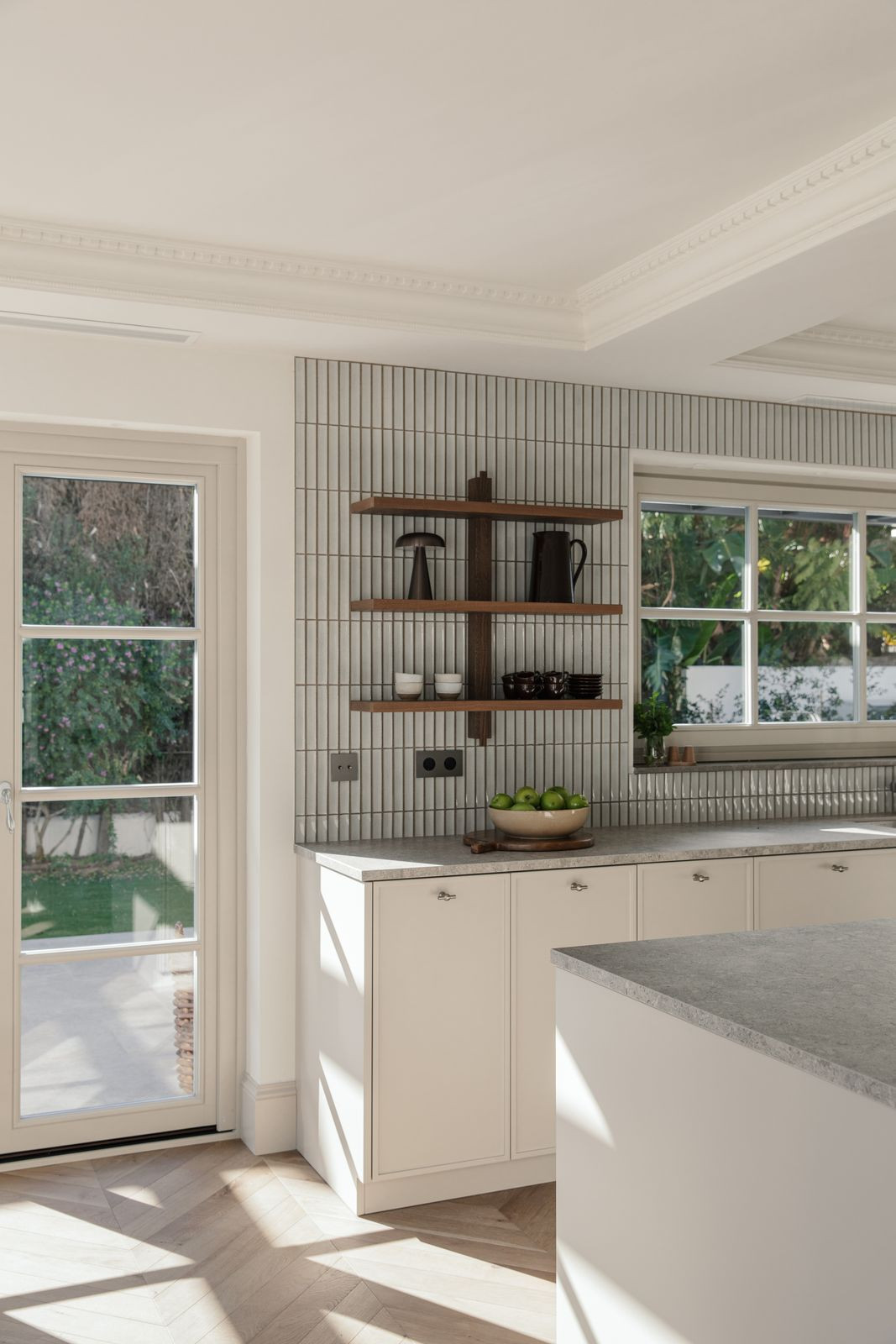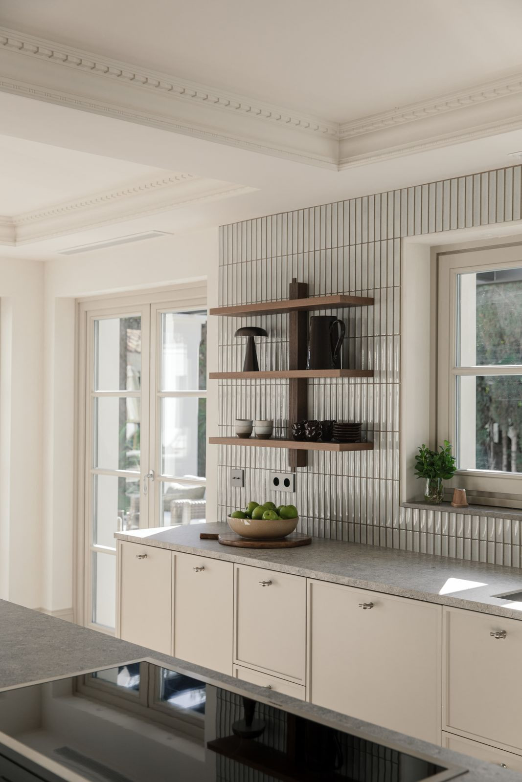 Namo širdis – nuostabiai pritaikyta virtuvė, kurioje funkcionalumas dera su aukščiausios klasės dizainu. Atviro plano svetainė ir valgomasis – tai šiuolaikinio interjero dizaino meistriškumo klasė, kurioje vyrauja rinktiniai baldai, raminanti neutrali paletė ir šiltos medinės detalės. Aukštos lubos ir tiesioginis išėjimas į terasą sustiprina patalpų ir lauko erdvę, pripildydamos ją natūralios šviesos ir oro.