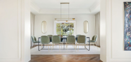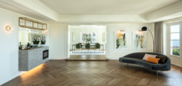 Kiekviena erdvė įrengta pagal aukščiausius reikalavimus, naudojant natūralius elementus ir įmantrius baldus. Grindys išklotos iš Italijos atvežtomis ąžuolo eglutės grindimis, kurios papildo neutralią šio prabangaus namo spalvų paletę.