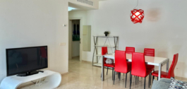 Apartamentai yra dviejų lygių, pasižymi šviesiu ir atviru išplanavimu, iš kurio galima tiesiogiai patekti į privačią terasą ir sodo teritoriją – puikiai tinka poilsiui lauke, saulės vonioms ar svečių pramogoms. Interjere yra erdvi svetainė ir valgomasis su dideliais langais, pro kuriuos atsiveria vaizdas į gražiai prižiūrimą bendrą baseiną, visiškai įrengta moderni virtuvė ir du erdvūs miegamieji, įskaitant pagrindinį liukso kambarį su atskiru vonios kambariu. Name taip pat yra antrasis vonios kambarys ir svečių tualetas, kad būtų dar patogiau.