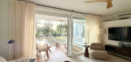 Puikiai suremontuotas sodo apartamentas su tropiniais vaizdais, esantis uždaroje bendruomenėje, kurioje yra moderni 1,4 ha lagūna su smėlio paplūdimiais, vandens sporto šakomis ir restoranais – 6 neriboto galiojimo abonementai įtraukti į turto pardavimo kainą.