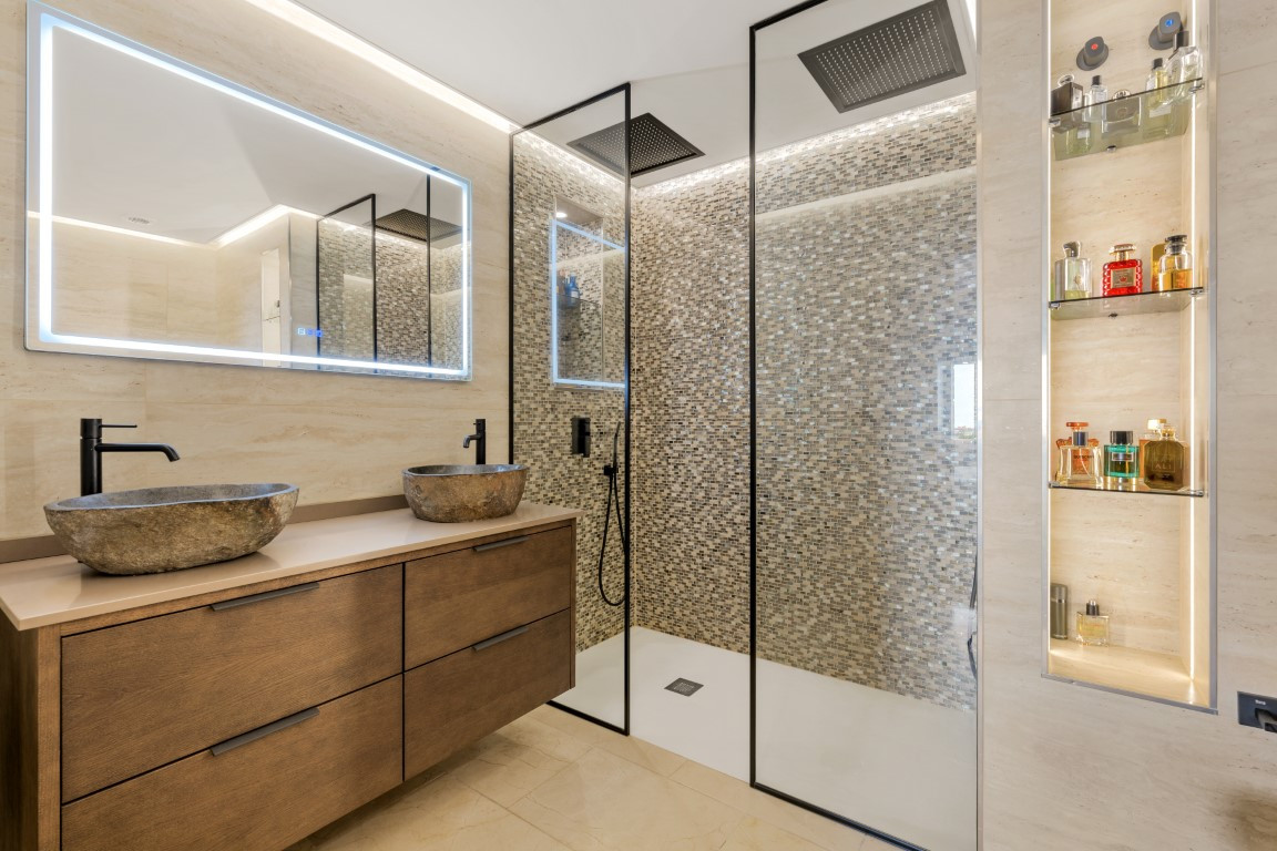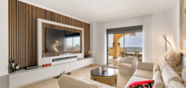 2024 m. visiškai atnaujintame bute yra trys šviesūs miegamieji ir du vonios kambariai, jis suprojektuotas taip, kad būtų galima mėgautis elegantišku, moderniu ir itin funkcionaliu gyvenimu. Į pietryčių pusę orientuota svetainė yra erdvi ir pripildyta natūralios šviesos, skoningai įrengta ir sklandžiai sujungta su įspūdinga 44 m² dengta terasa, kurioje galėsite mėgautis nepamirštamomis akimirkomis mėgaudamiesi atsiveriančiais kalnų ir Viduržemio jūros vaizdais.