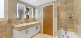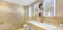 Pagrindinis liukso kambarys žavi drabužine ir elegantišku vonios kambariu, o du papildomi miegamieji suteikia patogumo svečiams ar šeimai. Aukštos kokybės apdaila, marmuriniai vonios kambariai ir oro kondicionierius (karštas / šaltas) užbaigia šį išskirtinį namą.
