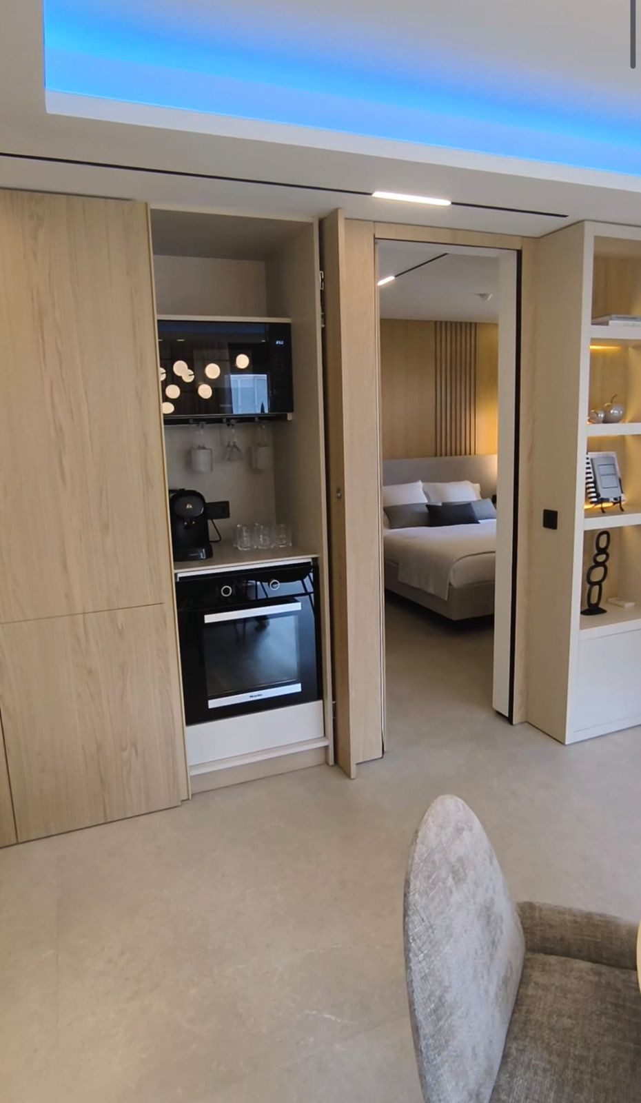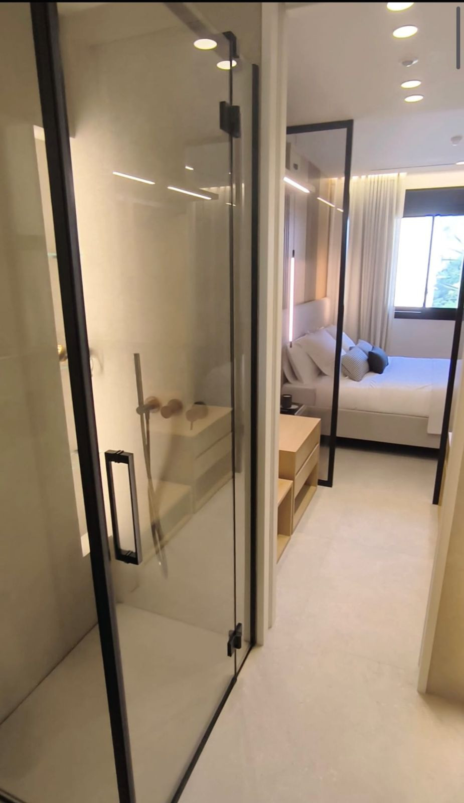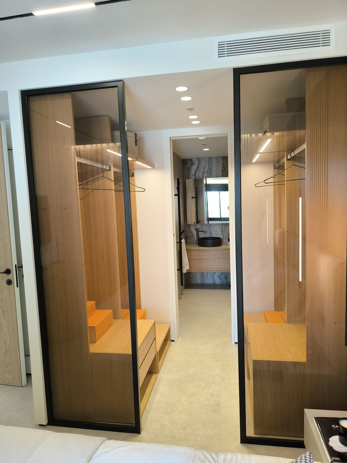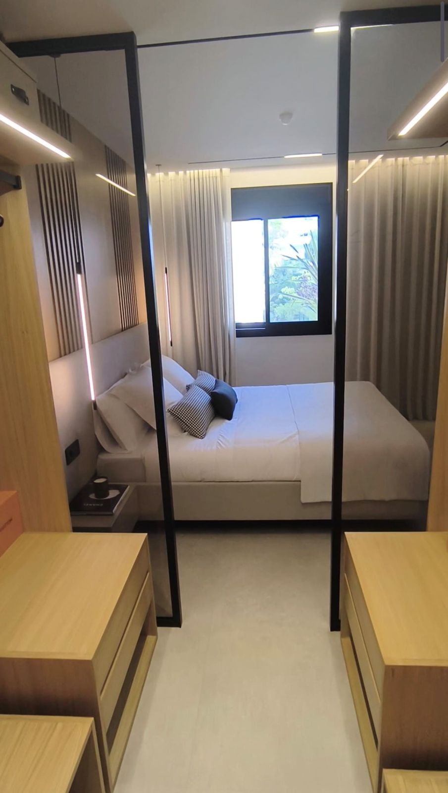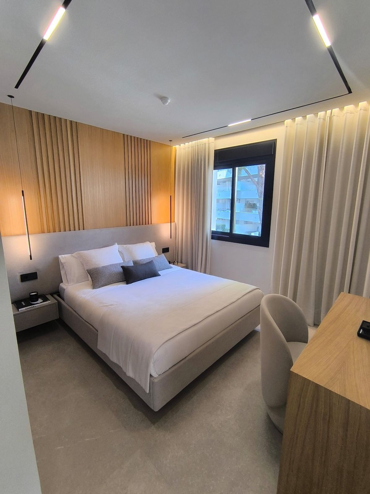 Pagrindinis miegamasis su drabužine ir privačiu vonios kambariu. Abiejuose miegamuosiuose yra LG televizoriai. Visapusiškas “Zennio” prekės ženklo namų automatikos valdymas.