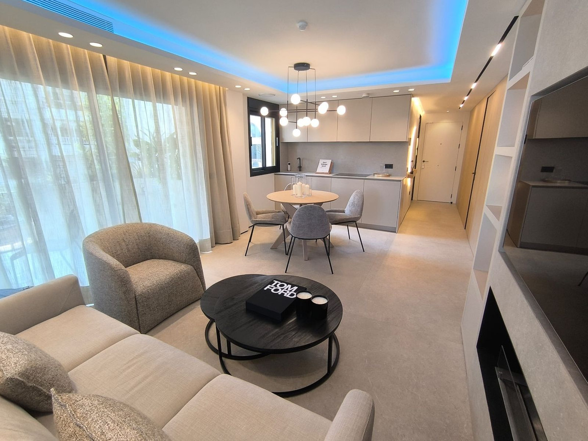 Modernūs 2 miegamųjų ir 2 vonios kambarių apartamentai, esantys geriausiame Puerto Banuso rajone. Didelis prieškambaris, iš kurio patenkama į skirtingas buto zonas. Pilnai įrengta ir apstatyta nepriklausoma virtuvė su integruota pusryčių zona, paslėpta medžio dailylentėse. Aukščiausios kokybės Logos prekės ženklo medžiagos. Miele prekės ženklo prietaisai su integruota keramine kaitlente stalviršyje. Šviesi svetainė su bioetanolio židiniu, integruotu LG televizoriumi ir išėjimu į atvirą terasą su vaizdu.