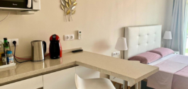 Parduodami studijos tipo apartamentai su vaizdu į jūrą. Ramioje vietoje, netoli viešojo transporto (autobuso ir traukinio), parduotuvių ir barų, o iki paplūdimio – vos 5 minutės pėsčiomis!