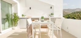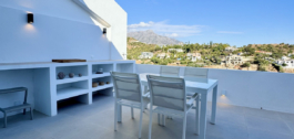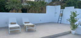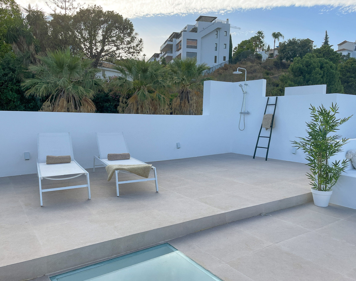 Terasoje yra valgomojo stalas, daug daiktų ir vonios kambarys. Ji taip pat gauna rytinę ir vidurdienio šviesą. Išėjus į stogo terasą saulė švies visą dieną, tad kodėl gi nepasinaudojus lauko dušu arba pakelta saulės terasa, kad atvėstumėte? Vakarus galima leisti prie kepsninės / lauko virtuvės zonos arba priešais pagal užsakymą įrengtą ugnies stalą.