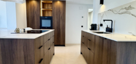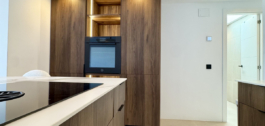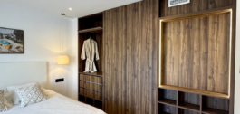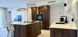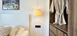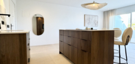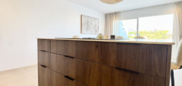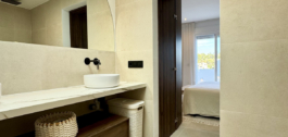 Pagal užsakymą įrengtoje virtuvėje yra dailiai kontūruota sala ir aukščiausios klasės “Bertazzoni” prietaisai. Vonios kambario sienos ir lauko erdvės išklotos 60×60 smėlio spalvos porceliano plytelėmis, kurios naudojamos visame dizaine, kad būtų užtikrintas vientisumas. Du vonios kambariai' elegantiški juodi elementai ir stoglangiai suteikia jiems idealų šiuolaikiškumą, todėl čia tikrai galima patogiai gyventi saulėje.