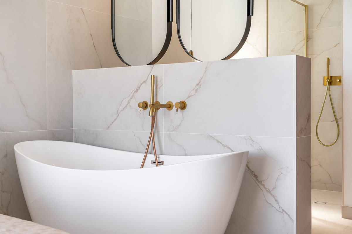 Pagrindiniame liukso kambaryje įrengta dramatiška laisvai pastatoma vonia, iš kurios atsiveria nuostabūs jūros ir kraštovaizdžio vaizdai. Kiekviename vonios kambaryje išklotos prabangios itališkos plytelės, pabrėžiančios rafinuotą turto estetiką.