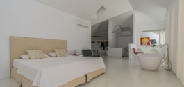Didelių matmenų dviaukštis penthauzas, kurį iš viso sudaro trys miegamieji, trys vonios kambariai ir tualetas, didelė svetainė su atskira virtuve ir skalbykla bei terasos su vaizdu į jūrą.