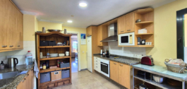 Interjere įrengta šviesi ir erdvi svetainė-valgomasis su jaukiu židiniu, iš kurio patenkama į erdvią terasą, idealiai tinkančią atsipalaiduoti ar pramogauti mėgaujantis nuostabiu kraštovaizdžiu. Pilnai įrengtą virtuvę papildo atskira pagalbinė patalpa, čia taip pat yra patogi svečių drabužinė.