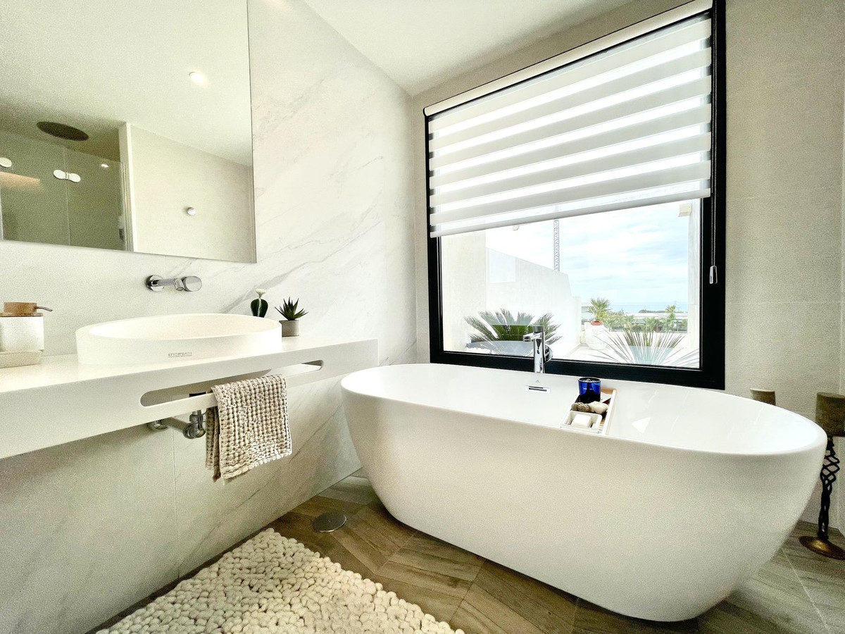“The Cape” – tai naujoviškas gyvenamųjų namų projektas Cabopino mieste. Šis pajūrio stebuklas yra Marbeljos (Malagos) savivaldybėje, vienoje iš gražiausių Kosta del Solio pakrantės vietų. Namas yra golfo priekinėje linijoje, jame yra 3 miegamieji, visi su vonios kambariais ir prausykla, iš erdvios terasos atsiveria nuostabus vaizdas į Viduržemio jūrą. Yra privatus baseinas su saulės terasa, taip pat privatus sodas, kuriame galėsite mėgautis šio regiono šviesumu. Gyvenamasis kambarys suprojektuotas taip, kad užtikrintų gerą savijautą, ir siūlo lengvumą bei eleganciją, o jo lubų aukštis siekia 3,60 m. Šis architektūrinis elementas siūlo labai erdvią ir šviesią erdvę su nuostabiais vaizdais į jūrą, kad garantuotų jums poilsio ir laisvalaikio vietą, kurioje galėsite mėgautis viena iš labiausiai privilegijuotų pasaulio vietovių. Virtuvėje puikiai įrengta buitinė technika NEFF – prekės ženklas, kuris specializuojasi moderniausių įmontuojamų virtuvės prietaisų gamyboje, “Porcelanosa” grindys, vonios ir virtuvės stalviršiai su vientisa integruota kriaukle ir aukščiausios klasės maišytuvais.Atlikta daug atnaujinimų, išplėstas pagrindinis miegamasis, skalbykla su integruota kriaukle ir aukščiausios klasės skalbykle / džiovykle, išskirtinis apšvietimo dizainas, prabangus automatinis langų uždengimas, medinės dailylentės svetainėje ir miegamajame, terasos atskyrime įrengta privatumo stiklo užuolaida, atnaujintos virtuvės spintelės, plytelėmis išklota priekinė veranda, įrengti lauko maišytuvai, šalia automobilių stovėjimo vietos įrengtas elektrinis automobilio įkroviklis, energiją taupanti “Aerotermia Daikin” klimato kontrolė, grindinis šildymas visame name. būtina pamatyti, kad įvertintumėte viską, ką šis namas gali pasiūlyti.
