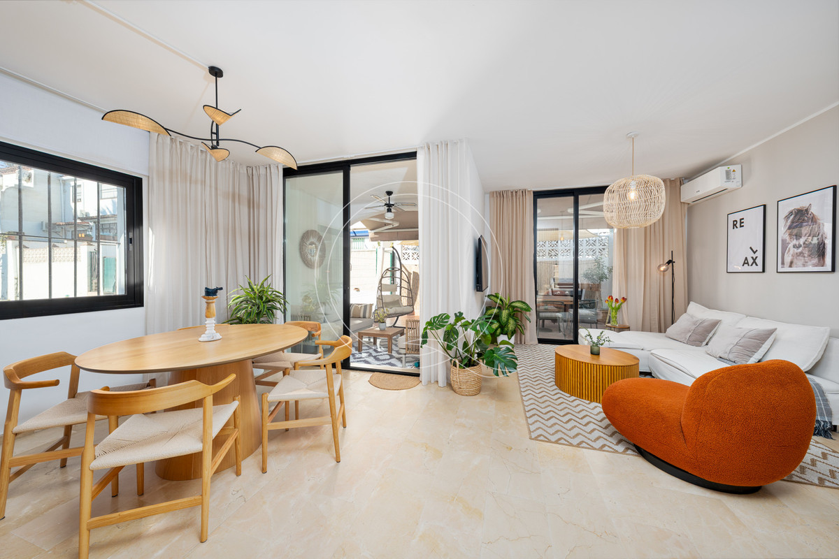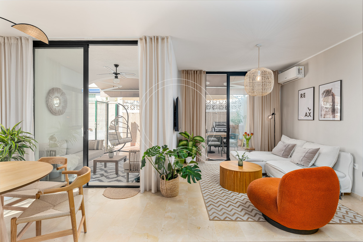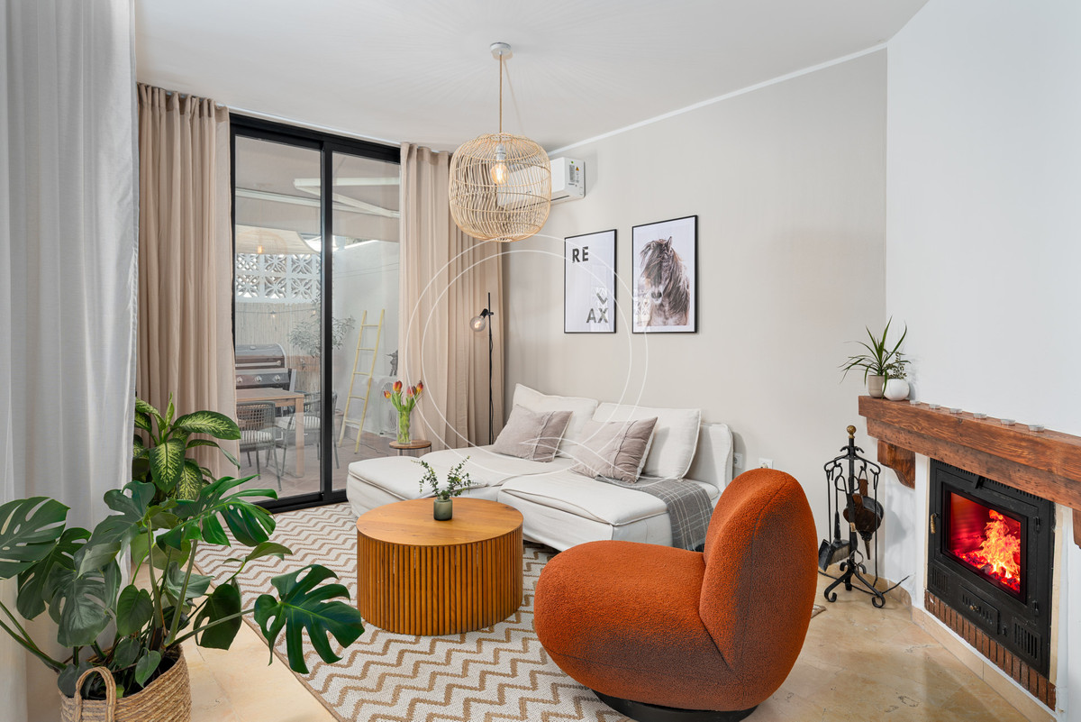 Nekilnojamasis turtas parduodamas su galiojančia nuomos licencija. Naujai suremontuotoje atviro plano svetainės ir valgomojo erdvėje rasite jaukų židinį, iš kurio patenkama į privačią terasą ir sodą, esantį vos už kelių žingsnių nuo baseino. Ši erdvė idealiai tinka vakarieniauti gryname ore, pramogauti ar mėgautis daugiau kaip 300 dienų Kosta del Solio saule.