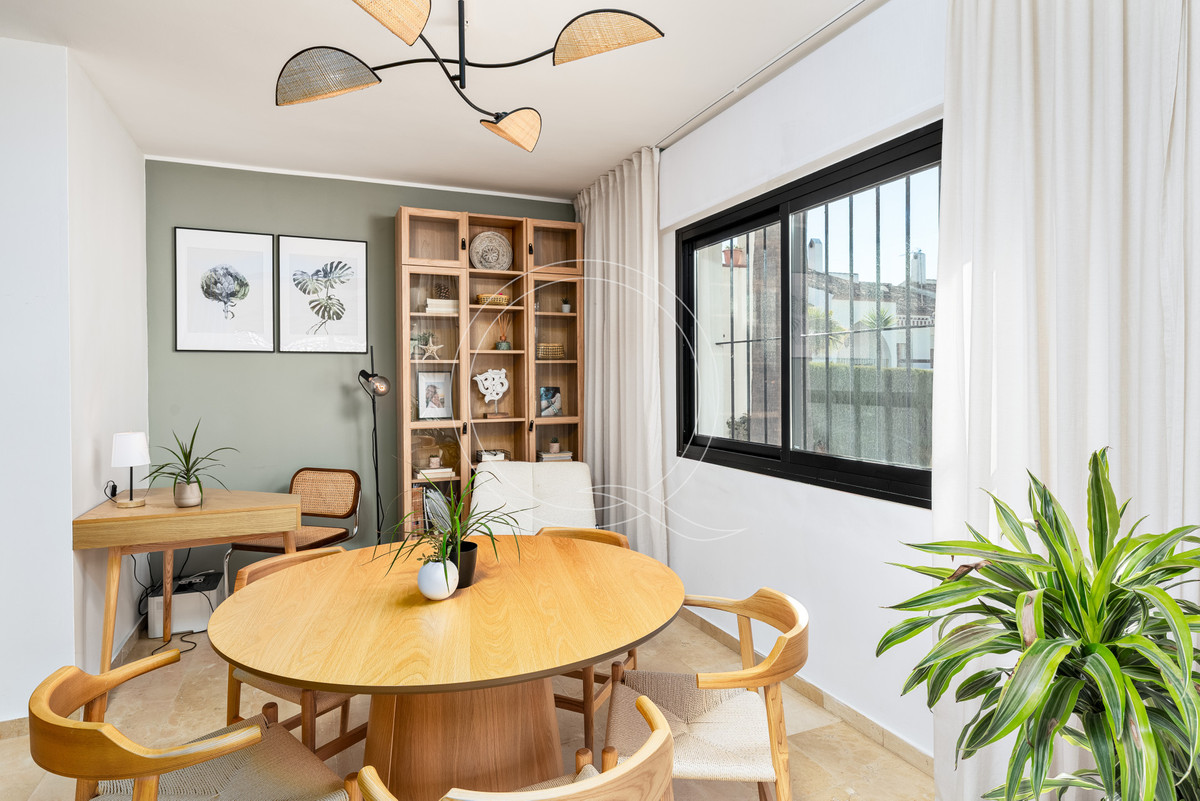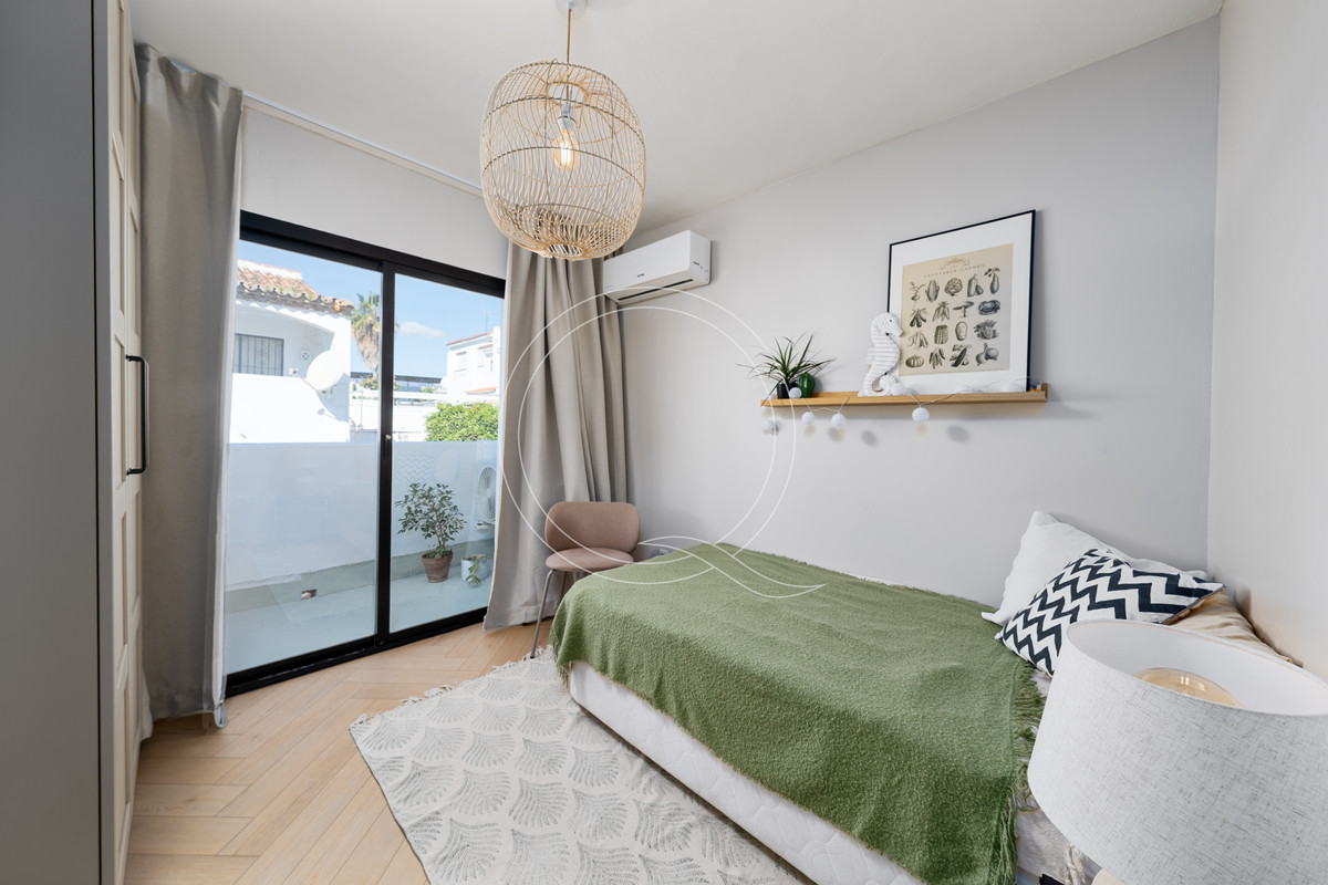 Reikia būtiniausių daiktų? Parduotuvės, vaistinės, teniso ir padelio klubas yra už 5 minučių kelio, o Buerto Banus arba Esteponą pasieksite vos už 15 minučių kelio. Bendruomenės baseinas ir vešlūs sodai pagerina jūsų gyvenimo patirtį, visa tai saugiame, šeimai draugiškame anklave. 108 m² užstatytas plotas ir 20 m² iš dviejų terasų, ši šviesi pietų krypties jauki oazė yra paruošta įsikėlimui! Nesvarbu, ar ieškote namų visam laikui, atostogų prieglobsčio, ar investicijų į nuomą (laukia trumpalaikis potencialas!), šis gyvenamasis namas yra puikus pasirinkimas. Mėgaukitės geriausia Bel Air prabanga, sveikatos priežiūros paslaugomis Hospiten Estepona (5 minutės) ir A7 greitkeliu, kuris jus be vargo sujungia su