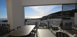 Pagrindinis įėjimas veda į patrauklų viršutinį aukštą, kuriame yra atviros koncepcijos svetainė-valgomasis ir visiškai įrengta atviro plano virtuvė bei patogus svečių tualetas. Svarbiausias akcentas? Erdvi daugiau kaip 8 m terasa, iš kurios atsiveria nuostabus panoraminis vaizdas į jūrą ir kalnus, puikiai orientuota pietvakarių saulei.