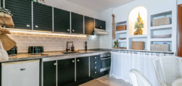 Atviro išplanavimo virtuvė – visiškai įrengta su visais kasdieniam gyvenimui reikalingais prietaisais