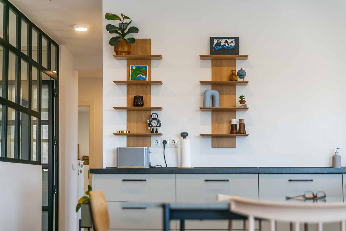 Name yra trys dviviečiai miegamieji, du modernūs vonios kambariai ir svetainė-valgomasis su integruota virtuve, kurioje atsiveria natūrali šviesa. Trečiasis miegamasis, kuris yra įstiklintas ir sujungtas su gyvenamąja erdve, puikiai tinka kaip biuras ar svečių kambarys, suteikdamas erdvei universalumo. Jame taip pat yra praktiška skalbykla, paslėpta už medinių skersinių, išlaikant buto tvarką ir estetiką. Kiekviena buto detalė sukurta taip, kad suteiktų komfortą ir šiuolaikinį stilių, pasižymėtų elegantiška apdaila ir funkcionaliu išplanavimu.