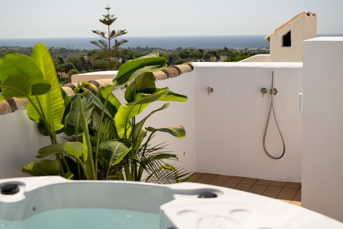 Šis elegantiškas 4 miegamųjų ir 4 vonios kambarių gyvenamasis namas, esantis pačioje Alohos širdyje, siūlo puikią stiliaus ir patogumo pusiausvyrą. Trijuose miegamuosiuose su atskiromis vonios kambariais užtikrintas ir komfortas, ir privatumas. Šviesi, atviro plano gyvenamoji erdvė išeina į erdvias terasas, iš kurių atsiveria kvapą gniaužiantys panoraminiai jūros ir La Concha vaizdai.